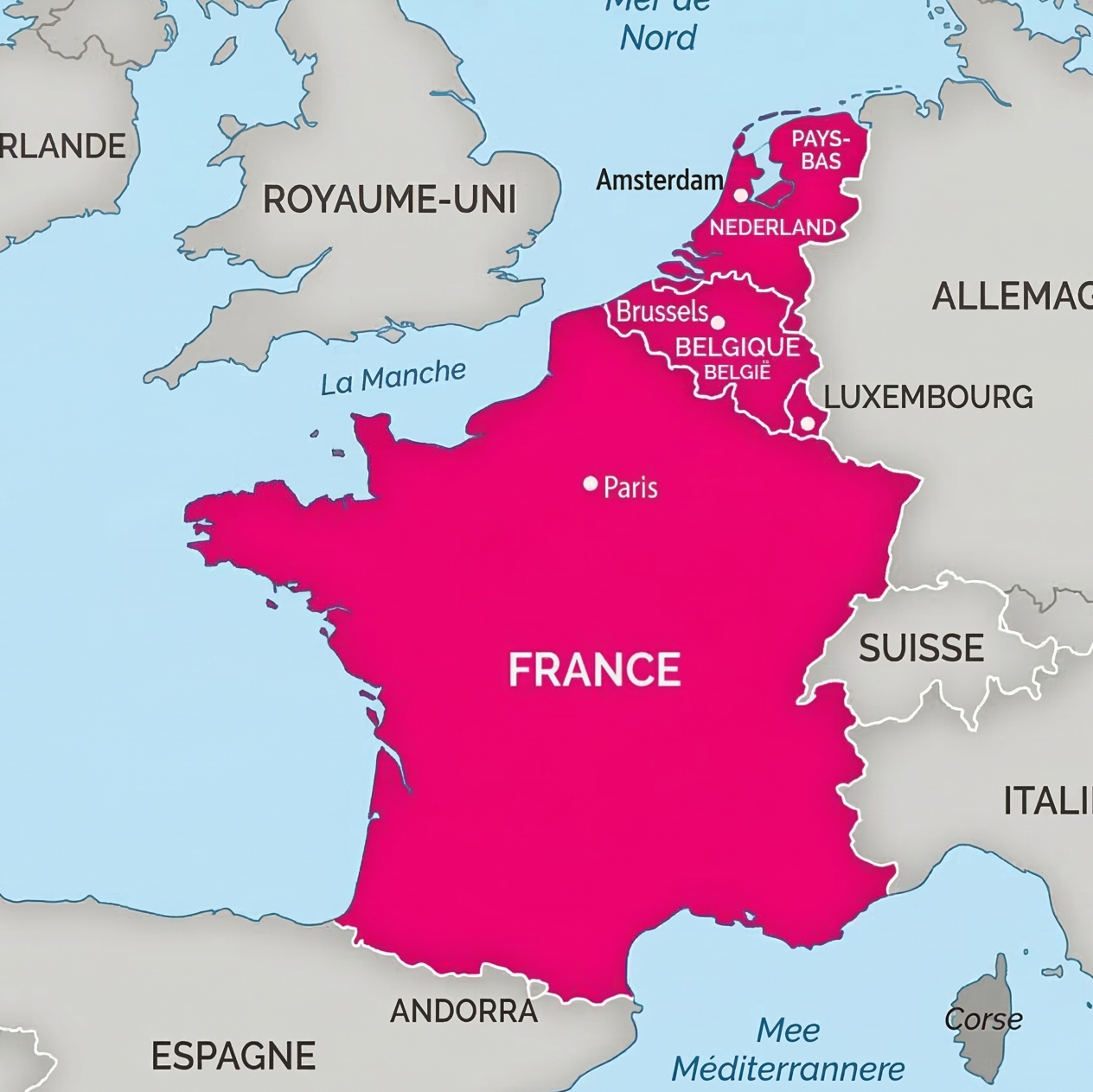 Présence en Belgique, France, Luxembourg et Pays-Bas